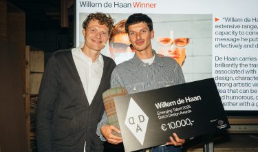 Dutch Design Awards (DDA) bekroont jaarlijks de meest toonaangevende ontwerpers. Uit een shortlist van vijftien zeer talentvolle genomineerden heeft de jury drie winnaars gekozen. De ontwerptalenten Vera van der Burg, Willem de Haan en Marten van Middelkoop & Joost Dingemans van studio Plasticiet hebben zaterdagavond 18 oktober een Dutch Design Award in ontvangst genomen uit handen van juryvoorzitter Borre Akkersdijk. De ontwerpers komen ieder uit een andere hoek van het ontwerpveld – van materiaalinnovatie tot ruimtelijke interventie en AI.